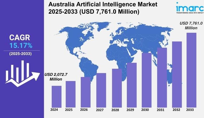 The newest report by IMARC Group, titled “Australia Synthetic Intelligence Market Report by Sort (Slim/Weak Synthetic Intelligence, Normal/Robust Synthetic Intelligence), Providing ({Hardware}, Software program, Providers), Expertise (Machine Studying, Pure Language Processing, Context-Conscious Computing, Pc Imaginative and prescient, Others), System (Intelligence Techniques, Determination Help Processing, Hybrid Techniques, Fuzzy Techniques), Finish Use Trade (Healthcare, Manufacturing, Automotive, Agriculture, Retail, Safety, Human Sources, Advertising, Monetary Providers, Transportation and Logistics, Others), and Area 2025-2033,” affords a complete evaluation of the Australia synthetic intelligence market progress. The report consists of competitor and regional evaluation, together with an in depth breakdown of the market segmentation. The Australia synthetic intelligence market measurement reached USD 2,072.7 Million in 2024. Wanting ahead, IMARC Group expects the market to succeed in USD 7,761.0 Million by 2033, exhibiting a CAGR of 15.17% throughout 2025-2033.