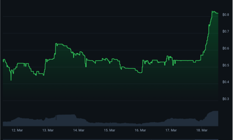Runestone, a mission led by Ordinals developer Leonidas, noticed a 40% spike in its ground value within the final 24 hours to high 0.04 BTC.