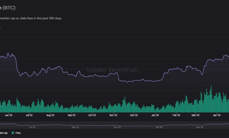 As per the knowledge supplied by Token Terminal, the Bitcoin community is presently encountering a big surge in transaction charges, which is the best noticed in additional than a 12 months. The info indicated that the charges generated rose to $3.2 million, exhibiting a exceptional surge of 64% within the final 24 hours.
