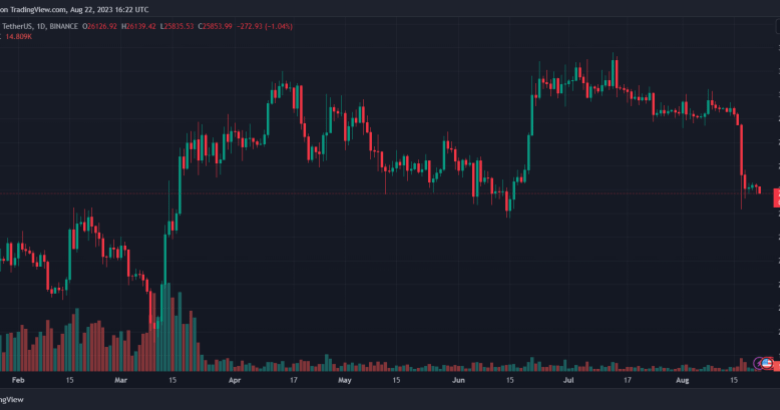 As of this writing, Bitcoin trades at $26,000 with sideways motion within the final 24 hours. Within the earlier seven days, the cryptocurrency recorded a 12% correction which has severely impacted different property within the sector, notably XRP and Binance Coin (BNB), which recorded losses north of 15% in the identical interval.