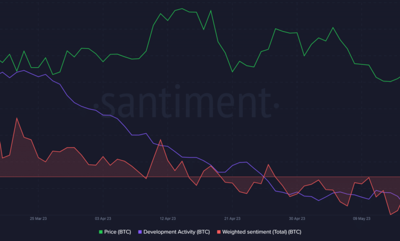 - Bitcoin’s improvement exercise was on a downtrend in the direction of the tip of March.