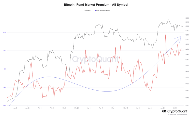 • Bitcoin belief premiums begin to rise indicating institutional curiosity.