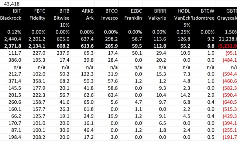 The Bitcoin market is at present experiencing a turning level, largely pushed by current tendencies in Bitcoin exchange-traded funds (ETFs). Yesterday, Bitcoin’s worth rose above $43,000, a motion intently tied to altering dynamics in ETF inflows and outflows, significantly involving the Grayscale Bitcoin Belief (GBTC).