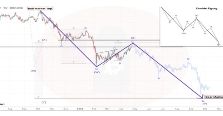 Market analyst Crypto Bullet has presented a bearish BTC forecast on X, suggesting that the flagship cryptocurrency should still have extra declines forward earlier than the current bear market ends. In his evaluation, he described BTC’s market construction as a “Double ZigZag (WXY)” formation, utilizing it to trace the cryptocurrency’s worth motion from its October 2025 peak and mission the place the following main decline may unfold.