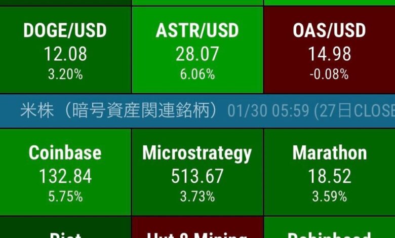 Amongst US crypto belongings (digital forex) shares, Coinbase rose 5.7%, MicroStrategy rose 3.7%, and Marathon Digital rose 3.5%.