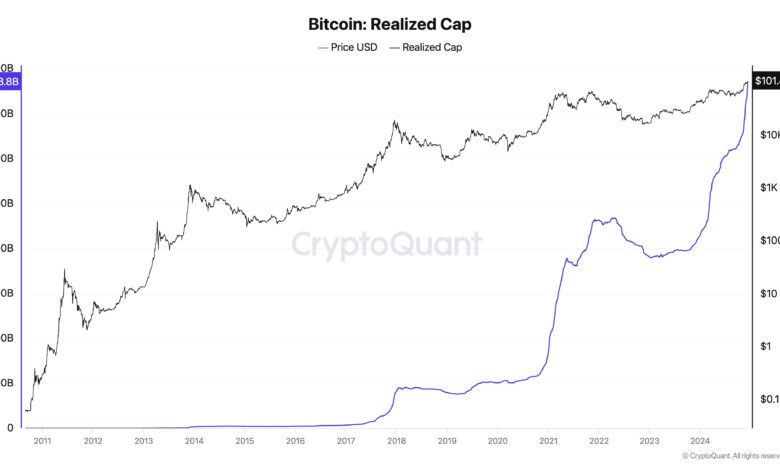 In a brand new post on X, CryptoQuant founder and CEO Ki Younger Ju has mentioned concerning the newest development within the Realized Cap of Bitcoin. The “Realized Cap” right here refers to an on-chain capitalization mannequin that calculates BTC’s complete worth by assuming the worth of every particular person token is the same as the worth at which it was final transacted on the community.