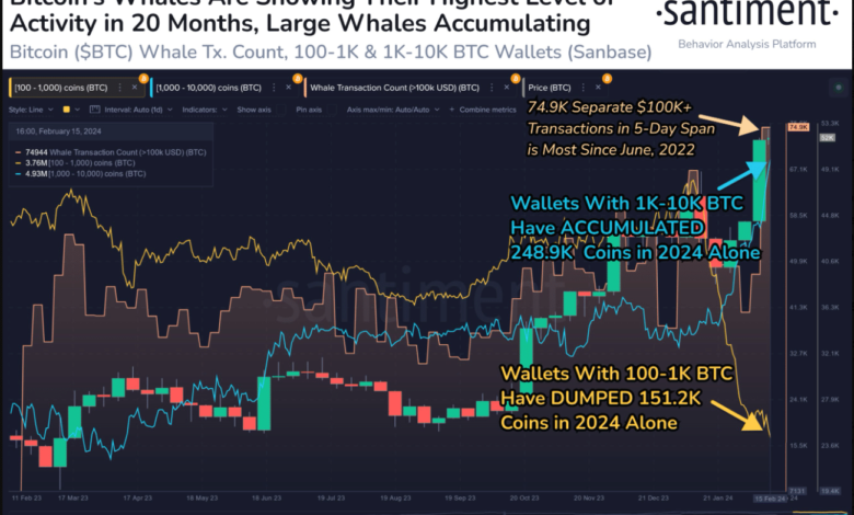 In the meantime, wallets with 100 to 1k BTC dumped 151.2k cash in 2024, or $7.89 billion price of Bitcoin. Moreover, the previous 5 days additionally witnessed the very best stage of whale transactions (transactions exceeding $100k) since June 2022.