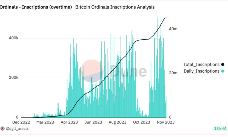 One of many causes for the rise in addresses could possibly be the growing curiosity in BTC ordinals. In accordance with Dune Analytics’ knowledge, the variety of inscriptions for the Ordinals had additionally grown.