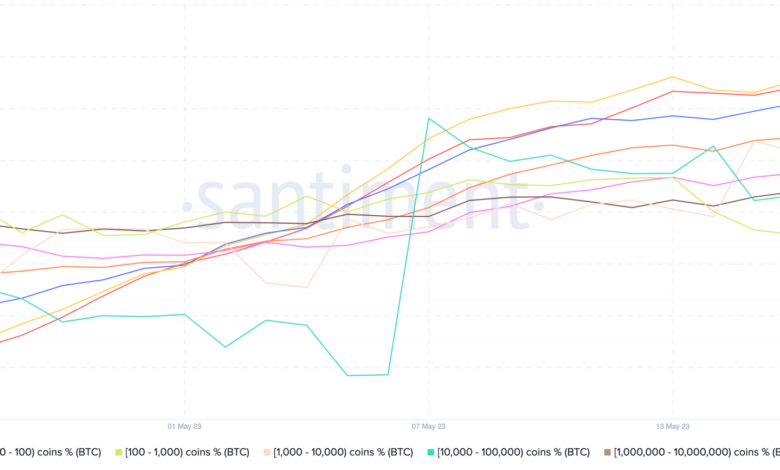 In accordance with Santiment’s information, the vast majority of BTC is held by addresses holding 10-100,000 Bitcoin. These giant addresses have been additionally noticed to be accumulating BTC at press time.