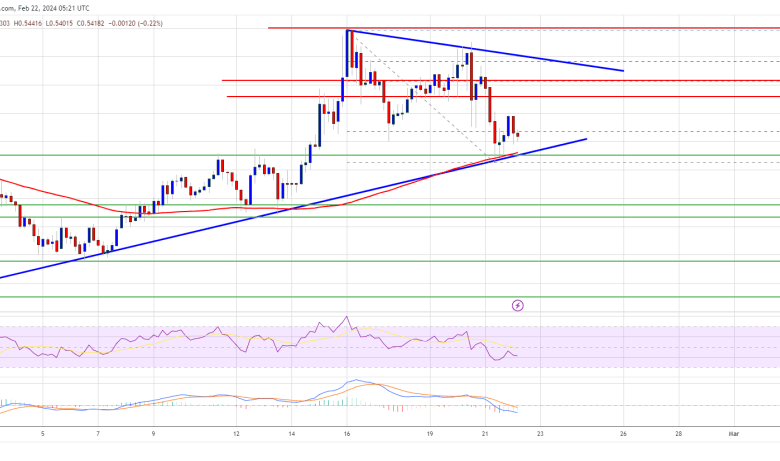 The following main assist is at $0.5220. If there’s a draw back break and an in depth under the $0.5220 degree, the worth may speed up decrease. Within the acknowledged case, the worth may retest the $0.480 assist zone.