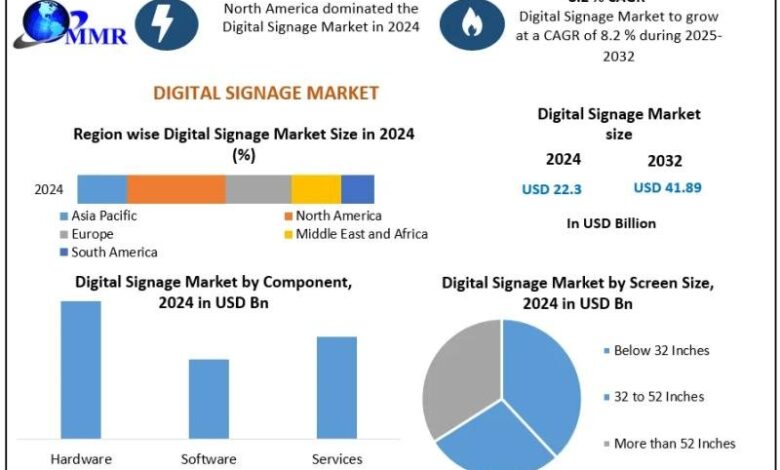 In response to a brand new report by Maximize Market Analysis, the worldwide Digital Signage Market was valued at USD 22.3 Billion in 2024 and is projected to achieve USD 41.89 Billion by 2032, rising at a CAGR of 8.2%. Development is fueled by improvements in LED and interactive show applied sciences, rising funding in buyer engagement options, and increasing adoption throughout retail, schooling, and company sectors worldwide.