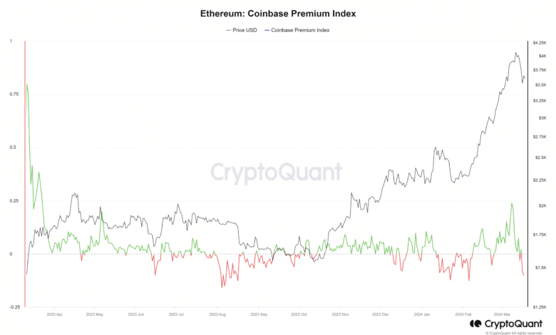 The Coinbase Premium is the share hole between the Ethereum costs on Coinbase Professional (ETHUSD pair) and Binance (ETHUSDT pair). This metric has trended greater because the twenty fourth of February.