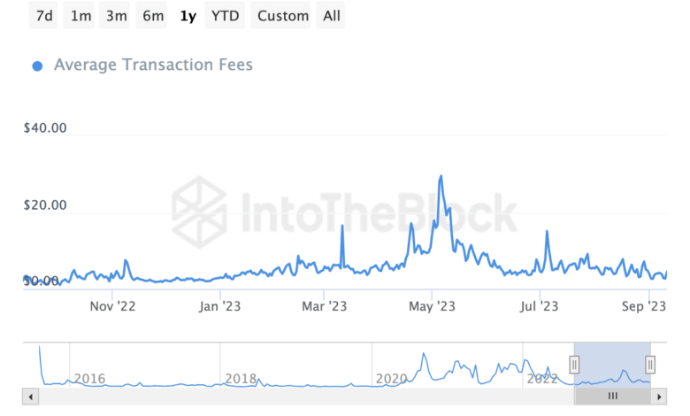 Common charges paid to course of transactions on main Layer 1 (1) community Ethereum [ETH] have plummeted to their lowest ranges since 2022 attributable to a gentle decline in on-chain exercise up to now few months.