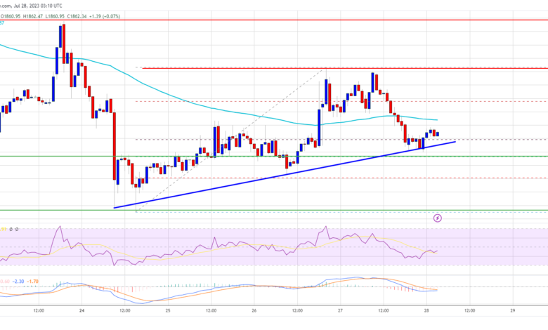 Ethereum’s worth tried a short-term restoration wave above the $1,850 zone. ETH was capable of get better above the $1,855 and $1,870 ranges, just like Bitcoin.