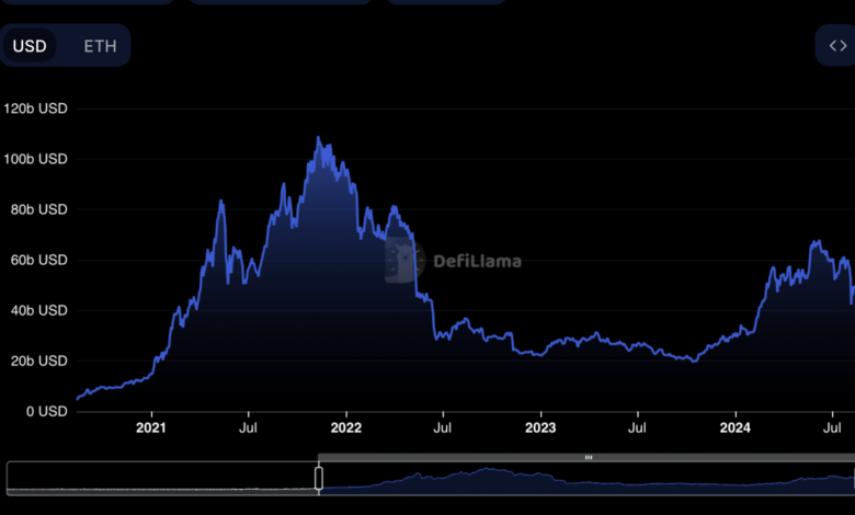 Data confirmed that Ethereum’s community was reportedly securing extra collateral—known as complete worth locked (TVL)—than ever earlier than, with present figures from DefiLlama exhibiting a TVL of $48.30 billion.