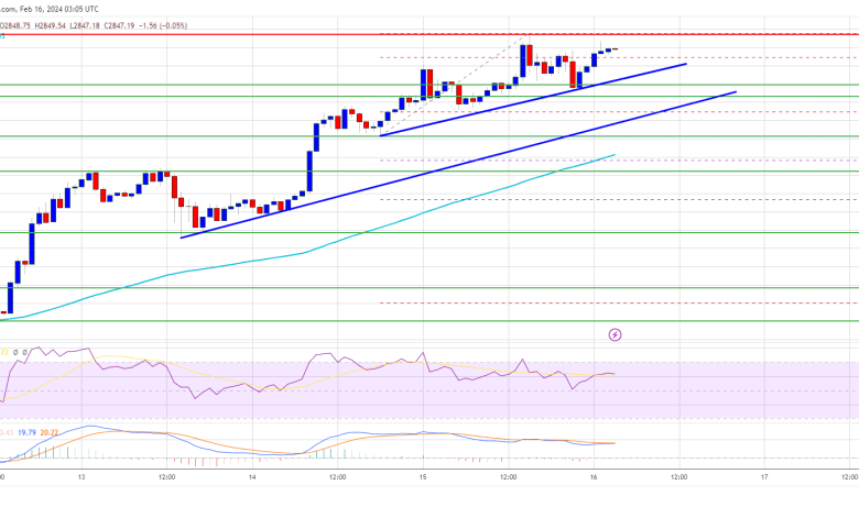 The bulls are actually lively above the $2,800 stage. Ethereum is now buying and selling above $2,800 and the 100-hourly Easy Transferring Common. There are additionally two bullish pattern traces forming with help at $2,825 and $2,780 on the hourly chart of ETH/USD.