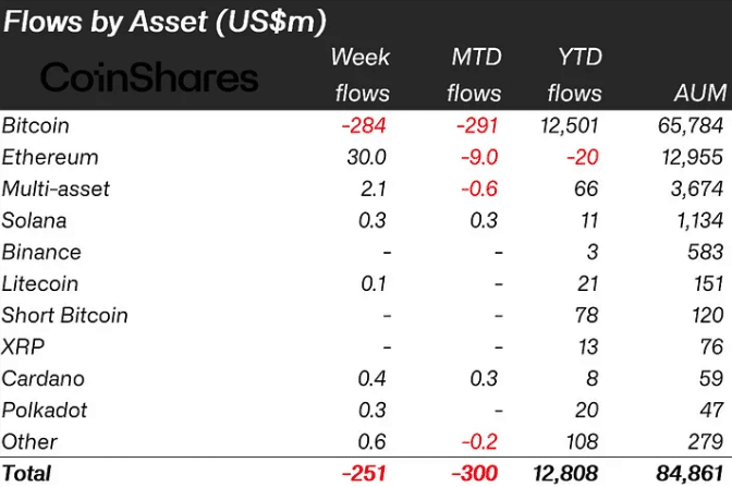 In complete, the outflows have been value $251 million with Bitcoin [BTC] accounting for $284 million. Nevertheless, Ethereum [ETH] was in a position to cut back that quantity after it registered inflows value $30 million.