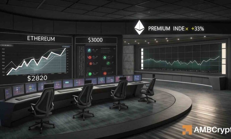Ethereum is sending combined alerts, although the broader construction stays constructive. Over the past 48 hours, the Coinbase Premium Index surged 33%, signaling rising demand from U.S.-based traders.