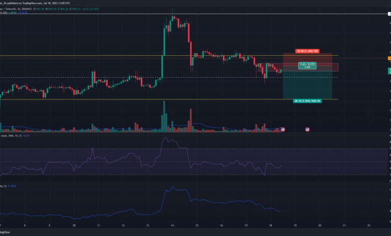 Bitcoin [BTC] and Ethereum each posted massive good points on 13 July however had been unable to carry on to the good points. Whereas BTC confirmed some hope of a bounce, the value motion of ETH hinted at additional losses. The primary indication was its fast withdrawal again into the month-long vary (yellow).