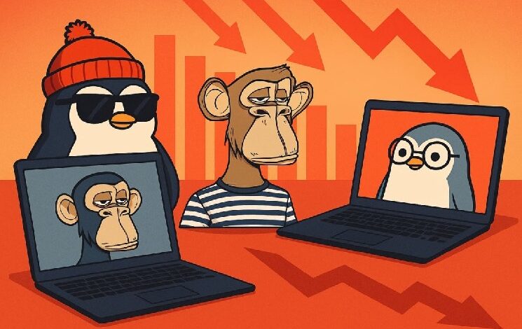 -18% on the ground of blue-chip collections within the final week, withPudgy Penguins andBored Ape Yacht Membership (BAYC) among the many most affected.