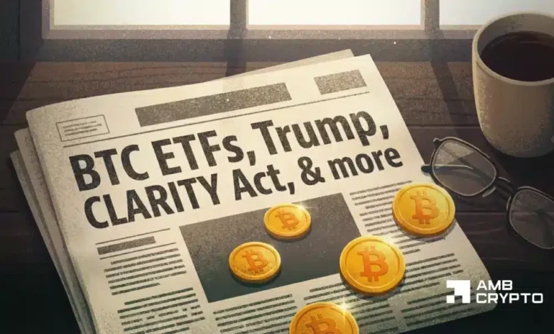 Here’s what happened in crypto today: BTC ETFs, Trump, CLARITY Act, & more