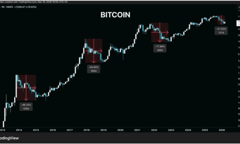 Bitcoin (BTC) is exhibiting early indicators of a protracted decline after peaking in October 2025. Historic patterns highlighted by a crypto analyst counsel that the world’s largest cryptocurrency has not but reached its macro bear market backside, regardless of recent major declines. Evaluation of historic patterns from previous cycles suggests the current market crash may persist for a lot of extra months, and the analyst urges traders and merchants to regulate their expectations accordingly.