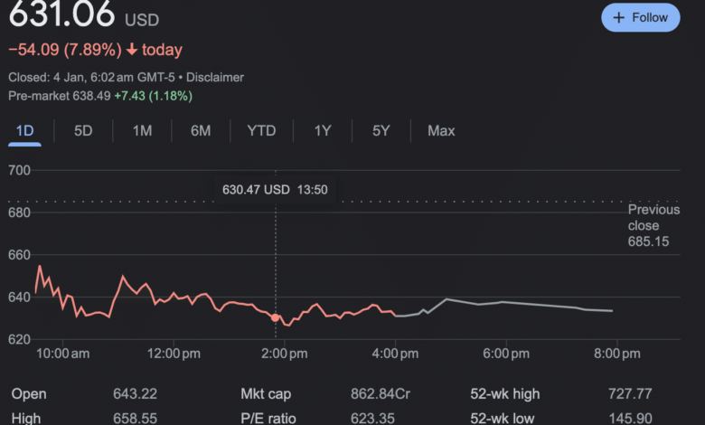 The market response to this transfer was notable, with MicroStrategy’s share value experiencing a considerable decline. On the time of writing, MSTR was buying and selling at $631.06 on the NASDAQ, marking a major drop of seven.89% within the final 24 hours.