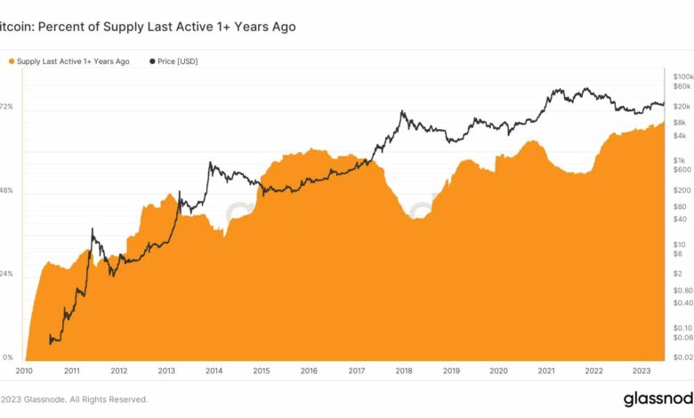 Regardless of market volatility, the variety of Bitcoin [BTC] holders continued to rise. A latest tweet showcased the more and more dormant Bitcoin provide, which has remained untouched for at the least a yr.