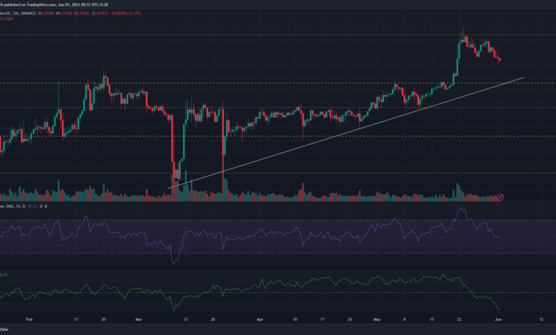 Knowledge from Coinalyze confirmed a gentle decline in Open Curiosity upon the retracement from the $0.0787 resistance. The Funding Charge on the four-hour chart was additionally on the decline since 28 Might.