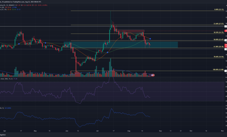 The cyan field at $20.1-$22.2 represented a bullish breaker block from the 1-week timeframe worth chart. It had served as resistance in early June however was flipped to assist in the course of the rally in July. At press time, Solana was buying and selling inside this space. Furthermore, the $20 psychological degree was additionally close by.