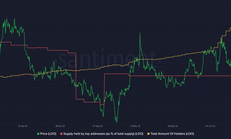 At current, LDO was buying and selling at $2.037, showcasing optimistic momentum over the previous couple of days. The rising variety of LDO holders aligns with the value development. Concurrently, the decline in whale provide suggests a shift in possession dynamics, indicating rising curiosity from retail buyers
