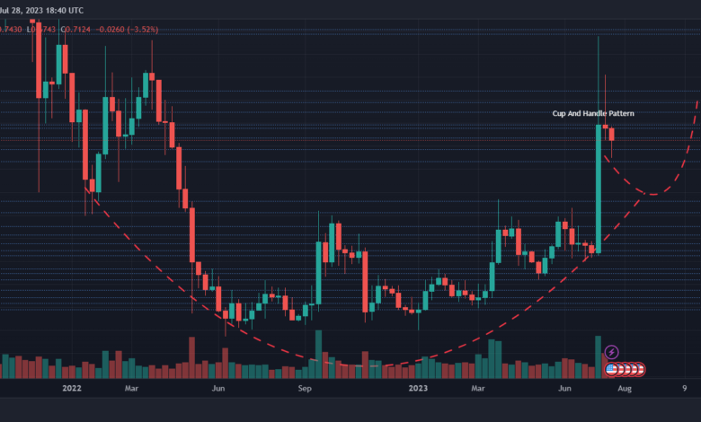 When writing, the altcoin XRP was buying and selling at $0.71. The XRP value chart exhibits the formation of a bullish reversal sample generally known as a cup and deal with.
