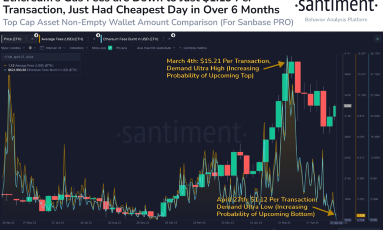 Ethereum, the world’s second-largest cryptocurrency by market capitalization, has seen a dramatic drop in transaction charges, in accordance with a latest evaluation by Santiment, a distinguished crypto analytics platform.