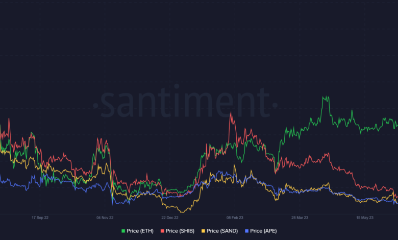 Analyzing the latest asset transfers by Voyager, it turned evident that solely ETH and SHIB had been exhibiting favorable value tendencies. Alternatively, SAND and APE displayed much less spectacular tendencies when in comparison with these two tokens.