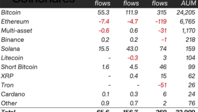 Bitcoin and Solana shared the main a part of the spoils in per week that produced round $66 million in…