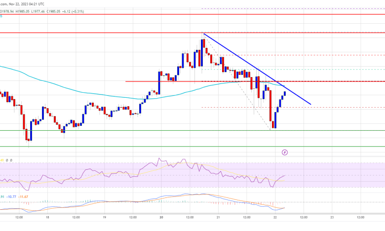 The bears even pushed the worth under the $1,950 help zone and the 100-hourly Easy Transferring Common. Nevertheless, Ether stayed above the $1,920 help zone. A low was shaped close to $1,930 and the worth is now making an attempt a contemporary improve.