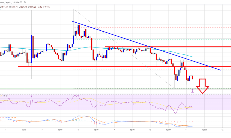 In consequence, the worth did not proceed greater and began a recent decline under $1,650, like Bitcoin. There was a draw back break under the $1,620 stage and the 100-hourly Easy Shifting Common. The value even retested the $1,600 assist zone.