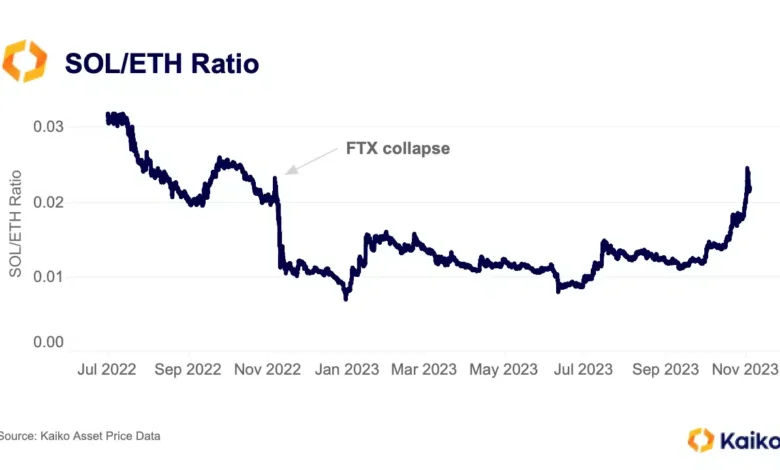 The Solana [SOL] to Ethereum [ETH] ratio has rallied steadily since September and has returned to its stage previous to the collapse of crypto alternate FTX in November 2022, Kaiko Analysis present in a brand new report