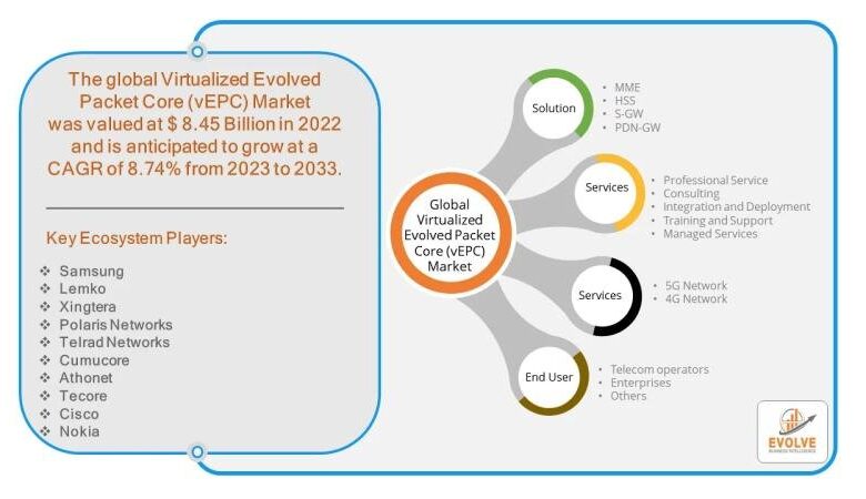 The telecommunications trade is at an inflection level, pushed by an insatiable demand for high-speed information, the proliferation of related gadgets, and the worldwide rollout of 5G. On this dynamic panorama, the Virtualized Advanced Packet Core (vEPC) market presents a major alternative for telecom operators to rework their networks and enterprise fashions. Valued at USD 8.45 billion in 2023, the vEPC market is forecasted to surge to USD 23.74 billion by 2033, demonstrating a strong Compound Annual Progress Price (CAGR) of 8.74%. This speedy enlargement indicators a transparent shift away from conventional, hardware-centric infrastructure towards a extra agile, software-defined future.