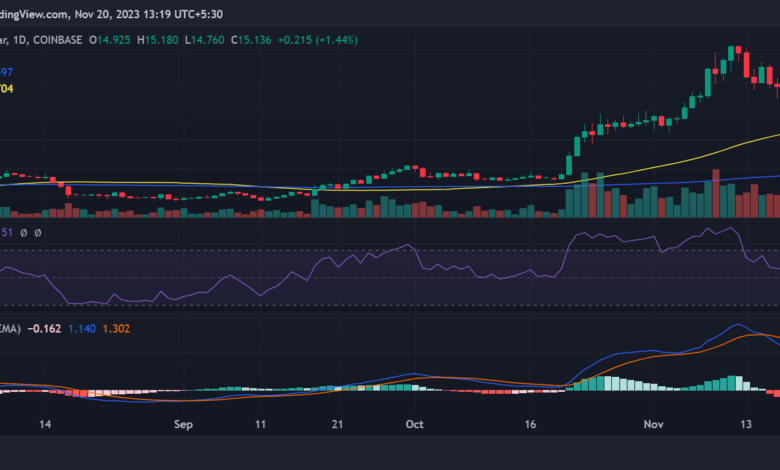 Analyzing Chainlink’s value actions revealed a optimistic begin to the week. On the day by day timeframe, it recorded an 8.45% improve in worth by the shut of buying and selling on the 18th of November. It reached round $14.9 in comparison with its opening value of round $13.7.