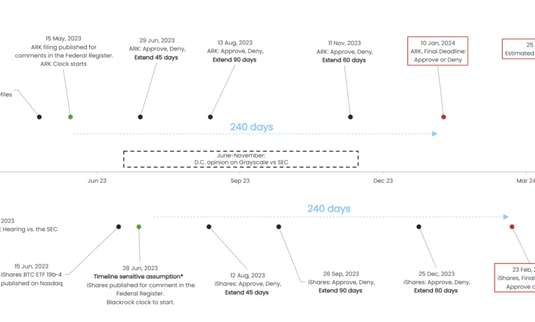 Nonetheless, K33 Analysis has drawn up a tough timeline primarily based on the SEC’s deadlines. Theoretically, a call may be reached inside 4 time intervals, with the choice course of following a scheme of anchored choice dates.