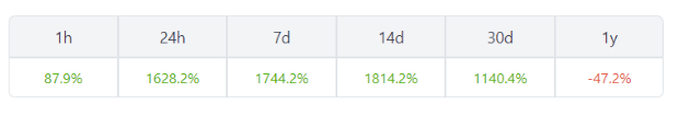 Coingecko data revealed that the worth of X skyrocketed to $0.00037534, experiencing an astounding 24-hour rally of 1,628.2%. Much more astonishing was its seven-day surge, reaching 1744.2%.